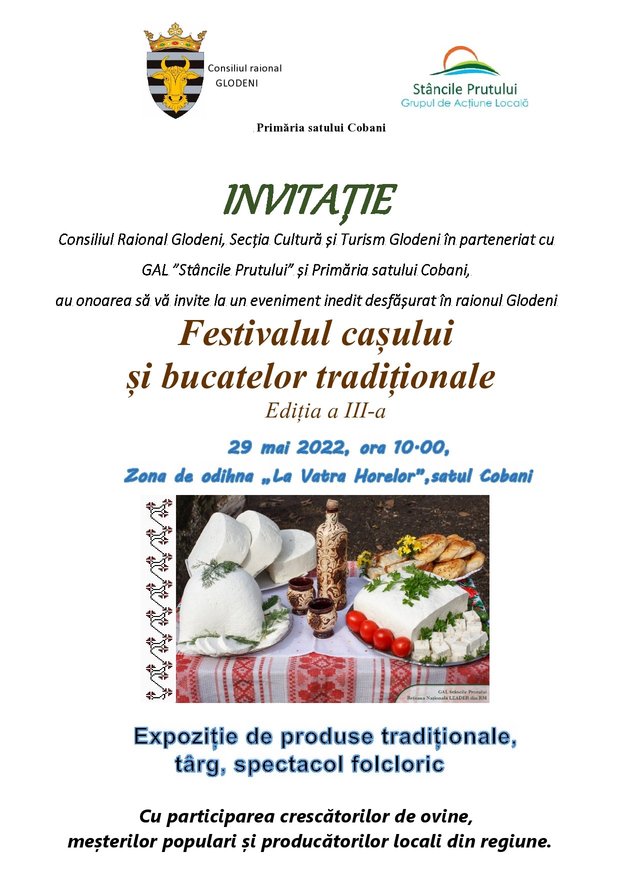 Prieteni, Festivalul cașului revine într-o nouă ediție: „Festivalul cașului și bucatelor tradiționale” GAL Stâncile Prutului în parteneriat cu Consiliul Raional…