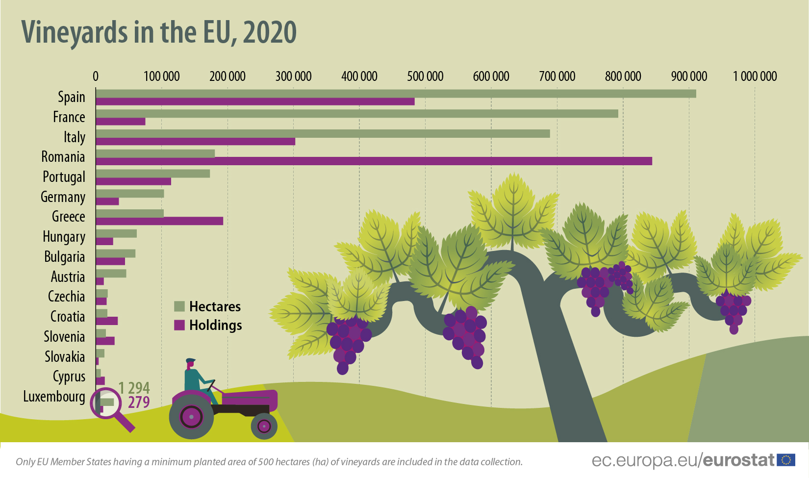 În total, Uniunea Europeană avea în 2020 peste 2,2 milioane de exploataţii viticole care cultivau 3,2 milioane de hectare de…